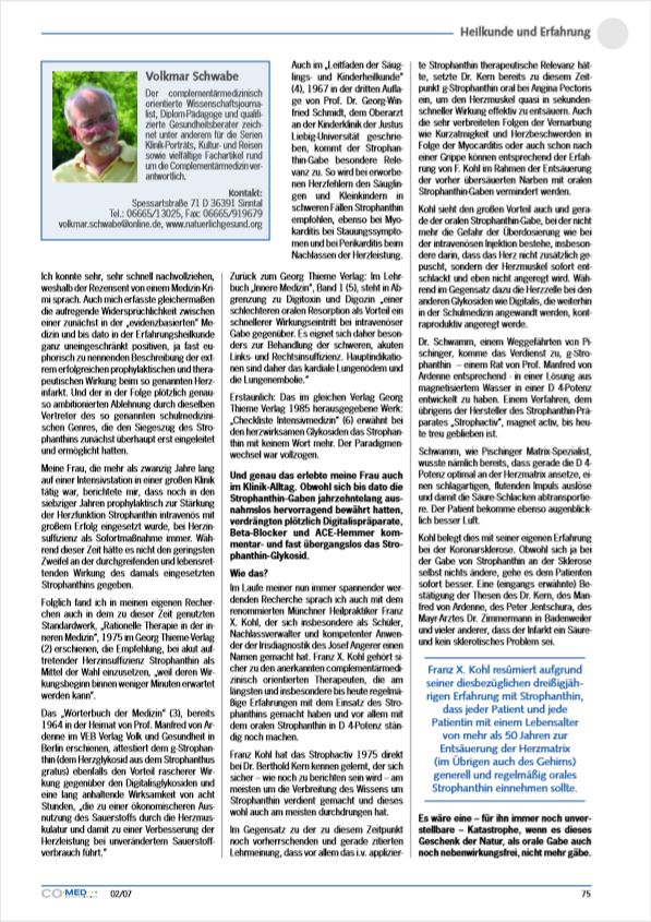(4), 1967 in der dritten AuflaDer complementärmedizinisch orientierte Wissenschaftsjourna- ge von Prof. Dr. Georg-Winlist, Diplom-Pädagoge und qualifi- fried Schmidt, dem Oberarzt zierte Gesundheitsberater zeich- an der Kinderklinik der Justus net unter anderem für die Serien Liebig-Universität geschrieKlinik-Porträts, Kultur- und Reisen ben, kommt der Strophan-